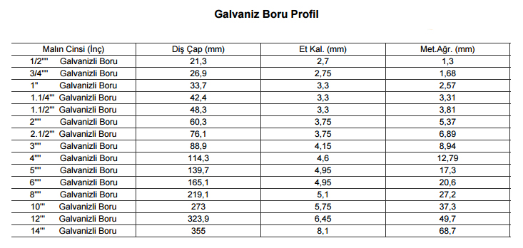 Galvaniz Boru Profil